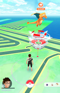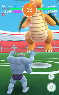 → Effectuer une Attaque Chargée en appuyant et maintenant le contact avec votre écran. L'Attaque Chargée inflige davantage de dégâts.