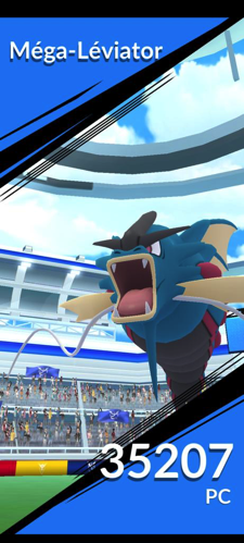 Celui avec l'icône de la Méga-Évolution (rouge) est un Méga-Raid (niveau 4) (assez difficile et réservé aux Méga-Évolutions), peut accueillir entre 5 et 20 joueurs et vous avez 5 minutes pour vaincre le Boss.
