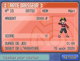 Vous trouverez sur cette page toutes les informations sur votre Carte Dresseur dans Pokémon HeartGold et SoulSilver.Informations sur le dresseur
