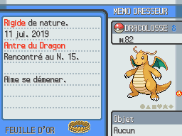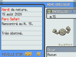 Regardez d'abord la nature de votre Pokémon.Déterminez les routes sur lesquelles il peut trouver une Feuille d'Or avec les tableaux de la section suivante.
