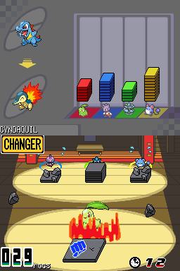 Vous pouvez changer de Pokémon pour laisser un Pokémon fatigué se reposer. Ce changement peut aussi se faire pendant qu'une pile de 10 briques s'ajoute.