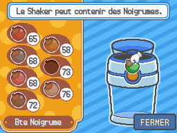 - un Noigrume Shaker (en parlant à l'employé de la Boutique près du Dôme Pokéathlon, cette fonction est ajoutée à votre Boîte Noigrumes).