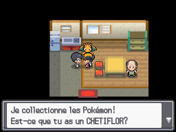 Un Élève dans la maison près du Centre Pokémon de Mauville vous propose son Onix contre un Chétiflor.