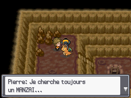 Après l'avoir battu, le samedi entre 17 et 20h, vous le trouvez devant l'entrée de la Cave Taupiqueur (côté Argenta). Il vous proposera d'échanger son Rhinocorne contre un Manzaï. Son Pokémon possède la capacité oeuf Crocs Éclair.