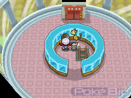 L'Arène d'Irisia est le lieu d'entraînement des meilleurs dresseurs de Pokémon Combat. Si nous n'avons pas de Pokémon Psy, nous devrons nous contenter d'un Pokémon Vol en croisant les bras pour qu'il ne se fasse pas toucher.Afin d'attirer l'attention du Champion, méditant sous sa cascade artificielle, nous devons manœuvrer le mécanisme d'arriver d'eau et au passage, battre les Dresseurs : Karateka Hiro avec Kicklee
