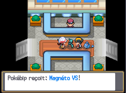 Alors que nous nous apprêtons à entrer à Mauville, BFF arrive, accompagné de son fidèle Marill (figure 41), pour nous offrir un Magnéto VS (figure 42). Cet objet servira à enregistrer tous les combats importants : combats en ligne, et dans des lieux comme la Tour de Combat.