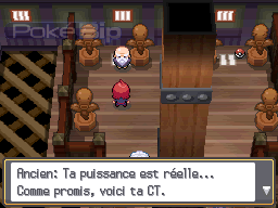 Attention à l'Hypnose du Hoothoot. Une fois l'Ancien battu, nous recevons la CT Flash (CT70) (figure 47) et nous pouvons enfin nous rendre à l'Arène.