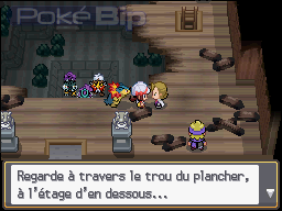 Nous allons faire la connaissance de Mortimer, Champion d'Arène de la ville, et d'Eusine. Par un trou du plancher nous pouvons également apercevoir Entei, Raikou et Suicune (figure 84), les Trois Fauves liés à Ho-Oh.