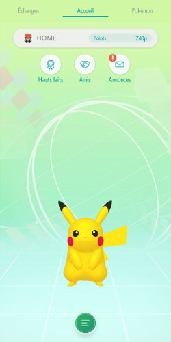 L'écran d'accueil peut afficher les événements en cours (distributions, compétitions, etc.) ainsi que des données sur les jeux synchronisés avec votre compte sur l'application. Des autocollants vous permettront de personnaliser votre profil, et vous pourrez en obtenir en remplissant certains hauts faits (par exemple, ramener un certains Pokémon venant d'une région spécifique).