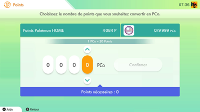 | Échanger des Points Pokémon HOME contre des PCo | Oui | - |