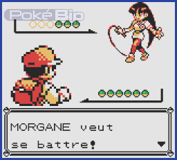 Elle est spécialisée dans le type Psy, qui n'a qu'une faiblesse : le type Insecte. Autant dire qu'il n'en a pas vu la rareté et la faiblesse des attaques insecte. Cette arène est remplie de téléporteurs, et cette fois pas moyen d'y échapper ! Une solution pour ne pas perdre son chemin consiste à toujours prendre le téléporteur qui se trouve soit au-dessus, soit en-dessous de vous lorsque vous arrivez dans une pièce (vous pouvez faire de même avec ceux à votre gauche/droite, mais ne mélangez pas les deux méthodes !), et vous finirez par atteindre Morgane à coup sûr.