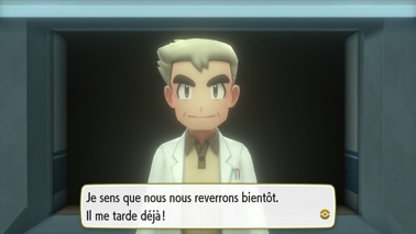 Il vous remercie pour votre aide et espère que vous vous reverrez tôt ou tard, vous incitant ainsi à vous procurer une version complète de Pokémon Let's Go Pikachu ou Évoli !