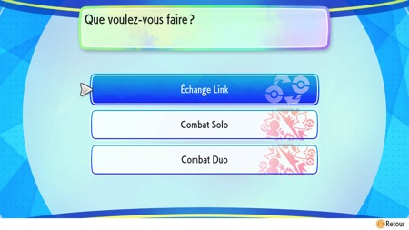 En premier lieu, une fois que vous avez sélectionné comment vous souhaitez échanger (en Local ou par Internet) dans le menu, sélectionnez "Échanges Link". On rappelle que pour échanger via Internet, l'abonnement au Nintendo Switch Online est obligatoire (ce qui n'est pas le cas si vous échangez en Local).