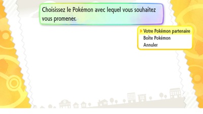 Une fois votre Poké Ball Plus reconnue par votre jeu, il vous faut choisir le Pokémon à emmener. Choisissez donc votre Pokémon partenaire ou un Pokémon directement dans votre Boîte Pokémon. Une fois choisi, le Pokémon rentre dans votre Poké Ball Plus et et prêt pour partir en balade !
