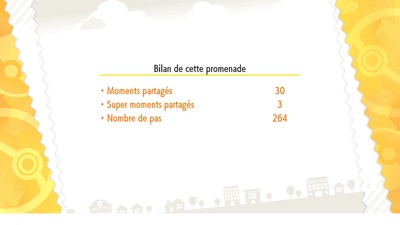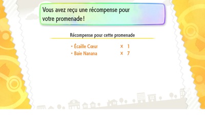 Mais ce n'est pas tout : vous avez également un bilan qui s'affiche avec ce que vous avez effectué avec votre Pokémon durant la promenade, et aussi des récompenses diverses et variées que vous obtenez toujours en fonction de ce que vous avez fait. Plus vous accumulerez de points (qui sont calculés en fonction du bilan de votre promenade), plus les récompenses que vous obtiendrez seront importantes.