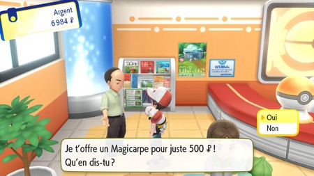 Dans le Centre Pokémon de la Route 4, un homme vous vend son Magicarpe pour 500 Pokédollars.