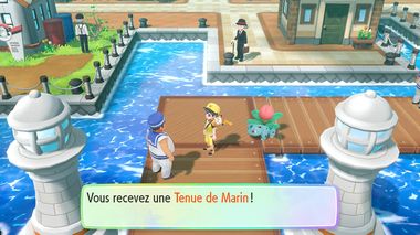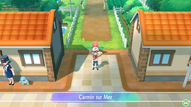 Vous arrivez ainsi à Carmin sur Mer, n'hésitez pas à faire le tour de la ville pour obtenir des Pokémon et des nouveaux vêtements pour vous et votre Pokémon partenaire !