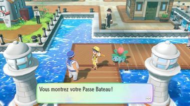 Dès que montez à bord, vous rencontrez votre rival et Blue, qui vous offre un Sablé Yantreizh. Vous pouvez maintenant parcourir le navire. De nombreux dresseurs (12 au total) y sont disséminés à travers le sous-sol, le pont et les cabines. N'hésitez pas à tous les vaincre (et à récupérer aussi les objets sur votre passage) pour endurcir votre équipe et gagner de l'expérience.