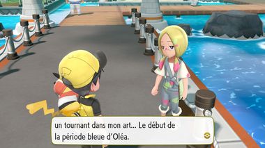 Le Directeur du Fan Club vous offre la Tenue Pikachu ou Évoli (selon votre version). Ceci fait, dirigez-vous maintenant vers l'Océane (l'arène de la ville étant pour le moment bloquée par un arbuste).