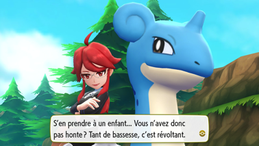 Vous vous faites rapidement encercler par la Team Rocket. Heureusement qu'une inconnue sur son Lokhlass vous aide, votre équipe est même soignée avant votre combat contre un Sbire de la Team Rocket :