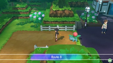 En ayant vu la Team Rocket partir vers l'ouest, vous décidez de les suivre jusqu'à leur planque, à Céladopole en passant par la Route 8 (et 7). Sur cette route, il y a 9 dresseurs à affronter qui ne devraient pas vous poser problème (pensez à récupérer les objets comme la Pierre Feu dans l'enclos) :