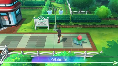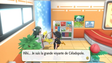 Vous arrivez à Céladopole. Pensez à faire soigner vos Pokémon dans le Centre Pokémon. À l'intérieur, un Fan de Camping vous propose par ailleurs d'échanger vos Sabelette contre ses Sabelette d'Alola, un Dompteur enseigne des capacités spéciales à votre Pokémon de départ. La "grande voyante" vous offre également ses services permettant de choisir la nature des Pokémon que vous obtiendrez dans la journée contre 10 000 Pokédollars (plus de détails sur cette page).