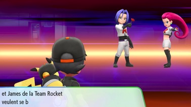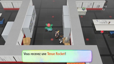 Prenez ensuite l'ascenseur jusqu'à l'étage -4, vous y trouvez le trio de la Team Rocket qui vous défie !
