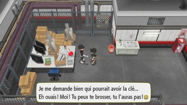 Récupérez le siège bleu devant les bureaux pour permettre à votre starter de monter dans les grilles d'aération. Vous contrôlez alors votre starter et vous pouvez aller chercher la clé !
