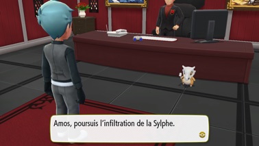 Suite à votre victoire, continuez. Vous assistez à une discussion intéressante sur les plans de la Team Rocket entre Amos, Admin de la Team Rocket et celui qui semblerait être son supérieur, Osselait est aussi présent ! Sur le point de partir vers un lieu nommé Sylphe, Amos croise votre chemin et vous affronte.