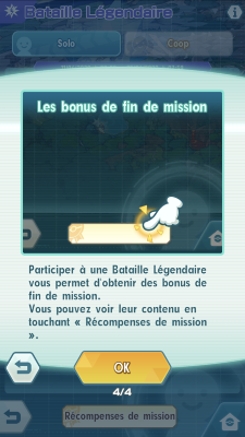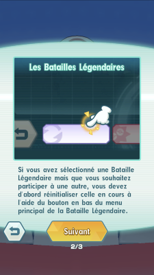 Votre progression sera automatiquement réinitialisée une semaine après votre dernière tentative avec la Bataille Légendaire.Quitter une partie en cours/Supprimer les données d'une partie interrompue