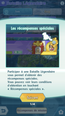 Depuis le 8 septembre 2022, Vous pouvez désormais participer à n'importe quelle Bataille Légendaire de façon permanente ! Tous les légendaires déjà apparus sont donc de retour pour de bon. Cependant, les affronter ne vous apportera que peu de récompenses la plupart du temps, mais cela restera un bon moyen pour vous entraîner et préparer vos équipes pour les Aventures Légendaires ! Concernant les missions évènementielles liées, elles continueront d'apparaître pour chaque légendaire de façon périodique.