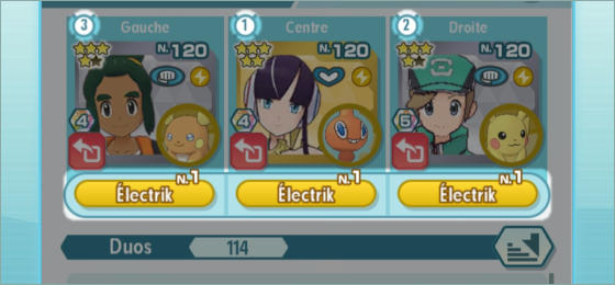 Si vous battez en premier un Conseil 4 ou un Duo Maître placé au centre, le Pokémon à droite ou à gauche lancera une capacité puissante. Essayez de battre le Duo du centre en dernier. Touchez le Pokémon d'un adversaire pendant un combat pour changer de cible.Recherche
