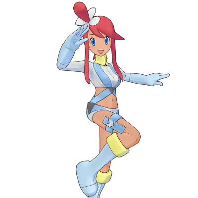 Une Championne qui pilote son avion-cargo accompagnée de Pokémon oiseaux. Son énergie lui vaut de nombreux fans.