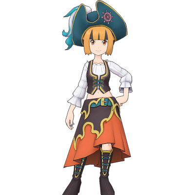 | Flo se lance dans une chasse au trésor à Passio. Dans sa tenue de pirate, elle rassemble le courage de prendre la mer avec son partenaire, Sinistrail. | |||||