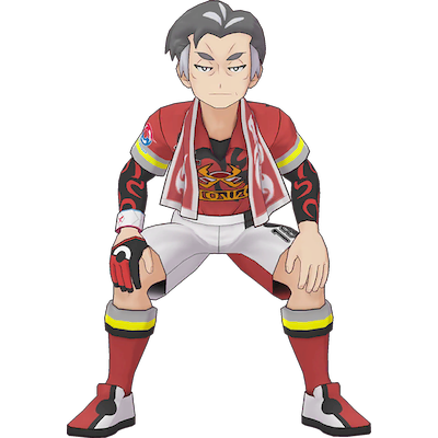 | Ce Champion d'Arène de type Feu a déménagé à Galar depuis Hoenn. Il a traversé une période difficile où il s'est retrouvé relégué en deuxième division de la Ligue de Galar. | |||||