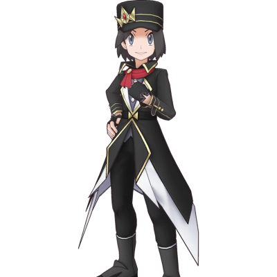 | Kalem porte une tenue célébrant son nouveau titre : Néo-Maître de Passio. Il partage cette gloire avec Amphinobi, son partenaire Pokémon aux couleurs rares. | |||||
