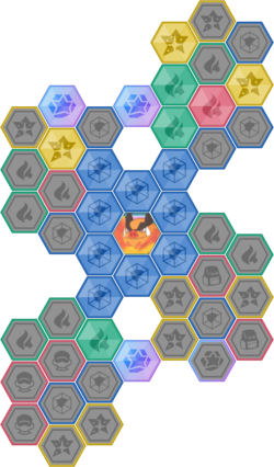 | Feu | Augmente de X l'Attaque et l'Attaque SpécialeNiveau 1 : 12 Niveau 2 : 16 Niveau 3 : 20 Niveau 4 : 24 des alliés uniquement s'ils utilisent des attaques de type Feu. |