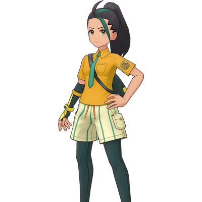 | Cette passionnée de combats est déléguée des élèves au sein son académie, située dans la région de Paldea. Sa puissance en tant que Dresseuse est telle qu'elle lui a valu le rang Maître. | |||||