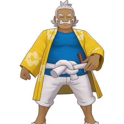 Ce Doyen de l'île de Mele-Mele d'Alola est aussi le grand-père de Tili. Dresseur de très haut niveau, il est également expert en lutte traditionnelle d'Alola.