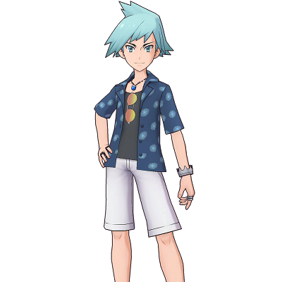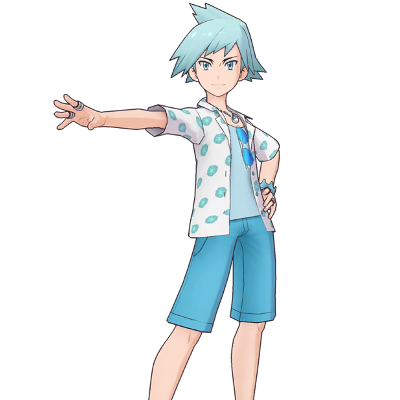 Pierre Rochard déborde d'enthousiasme avec cette tenue décontractée. Accompagné de son Sablaireau d'Alola, il cherche des pierres dans les grottes et calme les ardeurs de ses adversaires.
