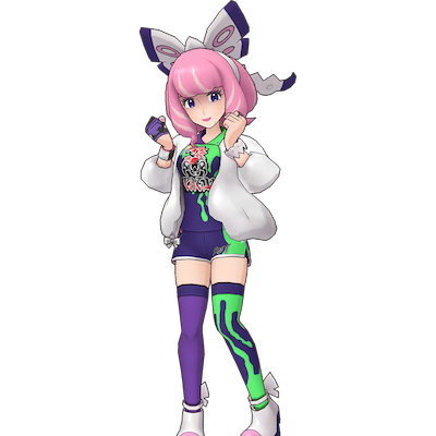 | Cette Championne d'Arène de deuxième division spécialisée dans le type Poison s'entraîne au Dojo de la Maîtrise de Galar. Rusée, elle affiche constamment un grand sourire. | |||||