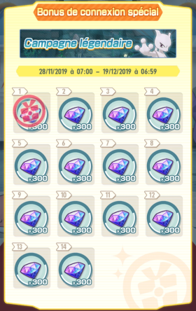 Un bonus de connexion de 300 Diamants était à récupérer sur 14 jours pendant la période de l'évènement.
