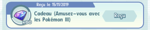 Pour célébrer la sortie de Pokémon Épée et Bouclier le 15 novembre, 60 Diamants étaient offerts pour vous remercier de jouer au jeu !