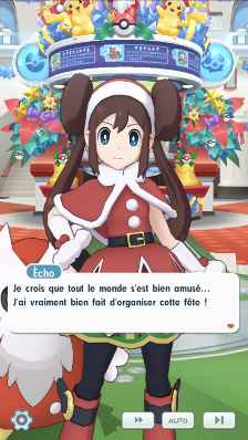 - Lorsque vous démarriez le jeu pour la première fois après le début de cet évènement, vous pouviez voir une scène où les personnages du scénario spécial ainsi que Thalie, Aglaé et Euphrosyne étaient en train de discuter pendant la fête au Centre Pokémon fraîchement redécoré. Une fois presque tout le monde parti, Écho vous faisait finalement part de son désir de vous affronter !