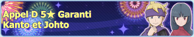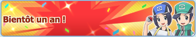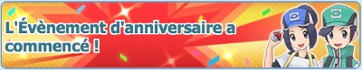 ![]() Évènement d'anniversaireDuos à l'affiche Lancement des Combats de Maître Potentiel 6★ EX Chen et Mew de retour Campagne retour 3000 Diamants et Bonus de connexion Missions Bingo Promotion sur les Diamants | Du 28 août 2020 au 28 septembre 2020 |