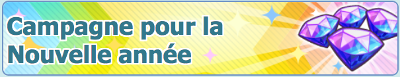 ![]() Bonheur pour tous !9 missions Échanges d'objets Duos à l'affiche Bonus de connexion Promotion sur les Diamants Scénario et Combats Solo Combats Collectifs | Du 10 décembre 2020 au 1er janvier 2021 |