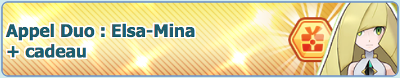 ![]() Équipe Lilie-bérée !17 missions Duos à l'affiche Bonus de connexion Scénario et Combats Solo Combats Collectifs | Du 10 septembre 2020 au 1er octobre 2020 |