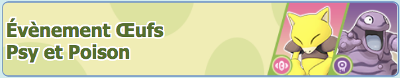 ![]() Évènement Oeufs Psy et Poison10 missions Duo à l'affiche Combats Solo | Du 5 novembre 2020 au 26 novembre 2020 |