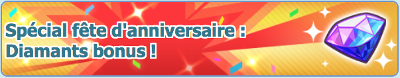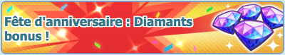 ![]() Spécial fête d'anniversaire : Diamants bonus ! | Du 10 septembre 2020 au 1er octobre 2020 |