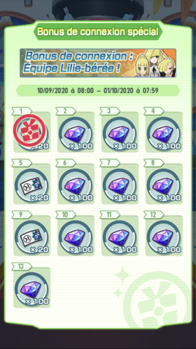 Un bonus de connexion offrant des Bons Saute-Combat et Diamants (60 Bons et 1 000 Diamants au total) était à récupérer en vous connectant sur 14 jours.